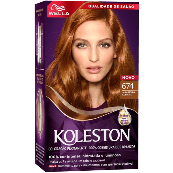 A Tintura Koleston Kit 674 Chocolate Acobreado da Wella é a escolha ideal para quem deseja uma transformação sofisticada com reflexos quentes e modernos. Sua fórmula exclusiva age no interior do fio, depositando pigmentos de cor intensa que resistem à água graças ao Tratamento Gloss Intenso. Além de proporcionar uma cor vibrante por até 6 semanas, o kit oferece hidratação profunda, deixando os cabelos macios, sedosos e com um brilho espelhado inigualável.